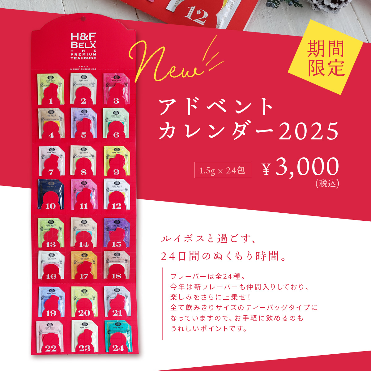 クリスマスまでの日にちをカウントダウン【10/17発売予約商品】2025アドベントカレンダー ルイボスティーアソート1.5g X 24包[M便 1/1]![]() ![]() 商品番号 2137 予約価格3,000円(本体価格:2,778円) 28ポイント 【予約受付期間:2025年10月10日17時0分〜2025年10月16日23時59分】 カラーバリエーション ![]() ![]() ![]() ![]() ![]() ![]() ![]() ![]() ![]() ![]() ![]() ![]() 送料に関して ◆配送方法でメール便を選択された場合、1点まで220円でお届けできます。◆1回のご注文で2点以上ご注文された場合または、宅配便を選択された場合は、宅配便の配送料へ変更させていただきます。 ◆メール便での配送ご希望のお客様は、1回のご注文で「1点まで」メール便をご選択頂き、ご注文頂きますようお願い致します。 ※写真に使用されているオーガンジー袋は別売りです。
