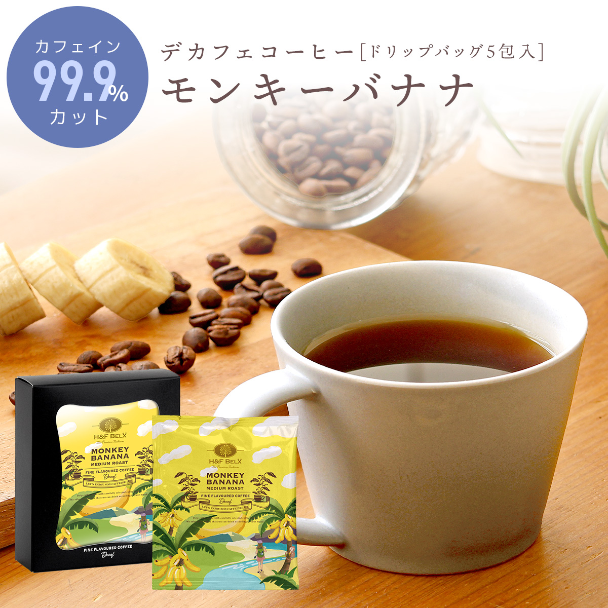 HOME > 全てのアイテム > プレミアムデカフェコーヒー > デカフェコーヒー モンキーバナナ ドリップバッグ5包
