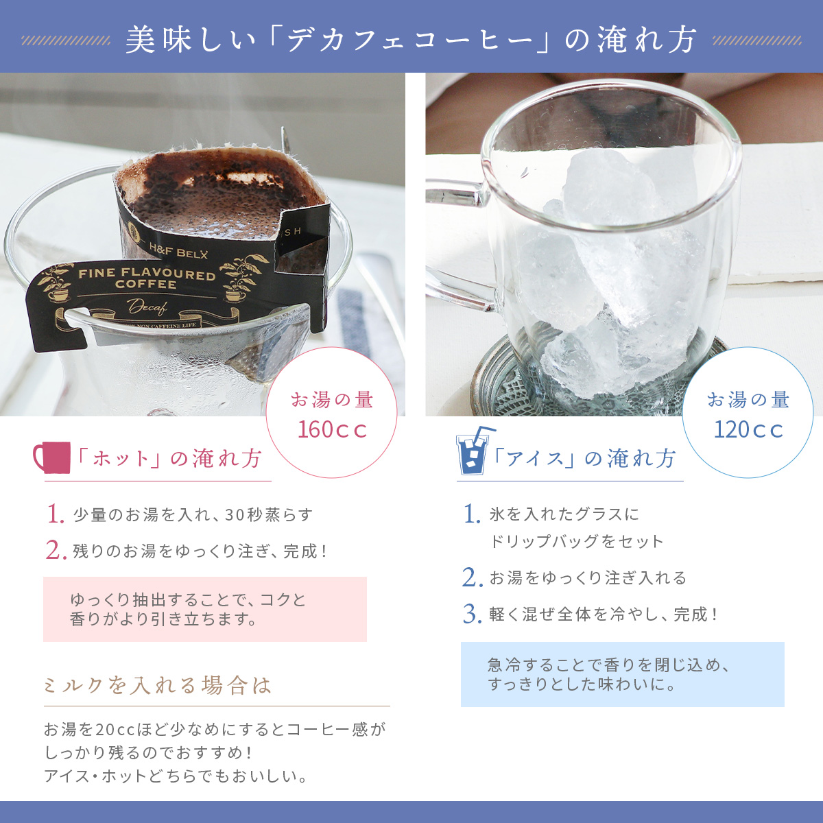カフェインレスで楽しむ、夜のためのコーヒー カフェインが苦手な方や、寝る前でもコーヒーを楽しみたい方へ。 「デカフェコーヒー ナイト」は、時間を気にせず飲めるやさしい一杯です。 しっかりとしたコクとまろやかな口当たりで、満足感のある味わい。 ミルクとも相性がよく、ほっと一息つきたい夜のリラックスタイムにぴったりです。 ■ カフェインレスなのにしっかり美味しい カフェインを控えたい方でも安心して楽しめるデカフェコーヒー。 夜や就寝前でも気兼ねなくコーヒータイムをお楽しみいただけます。 ■ ミルクと相性抜群のコク深い味わい コクのあるしっかりとした味わいながら、口当たりはまろやか。 カフェオレやラテにしても美味しく、リラックスした夜時間に最適です。 ■ ドリップバッグで手軽に本格コーヒー 1杯分ずつ個包装されたドリップバッグタイプ。 お湯を注ぐだけで、手軽に本格的な味わいを楽しめます。 ■ ギフトにもおすすめのパッケージ 思わず手に取りたくなる可愛いデザイン。 ちょっとしたプレゼントや自分へのご褒美にもおすすめです。 【こんな方におすすめ】 ・カフェインが苦手だけどコーヒーが好きな方 ・寝る前のリラックスタイムにコーヒーを楽しみたい方 ・健康を気遣う方 ・自分好みのフレーバーコーヒーを選びたい方