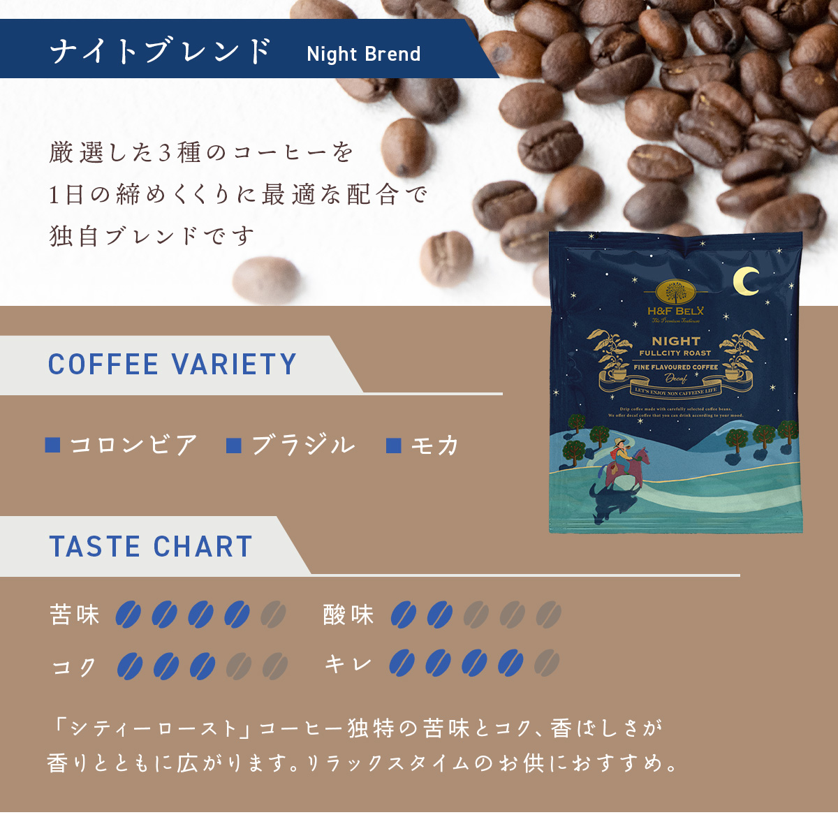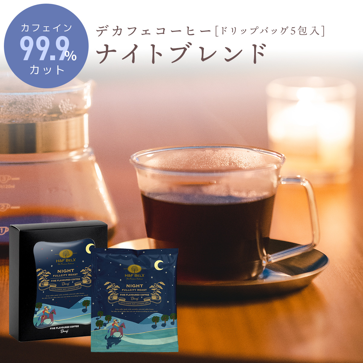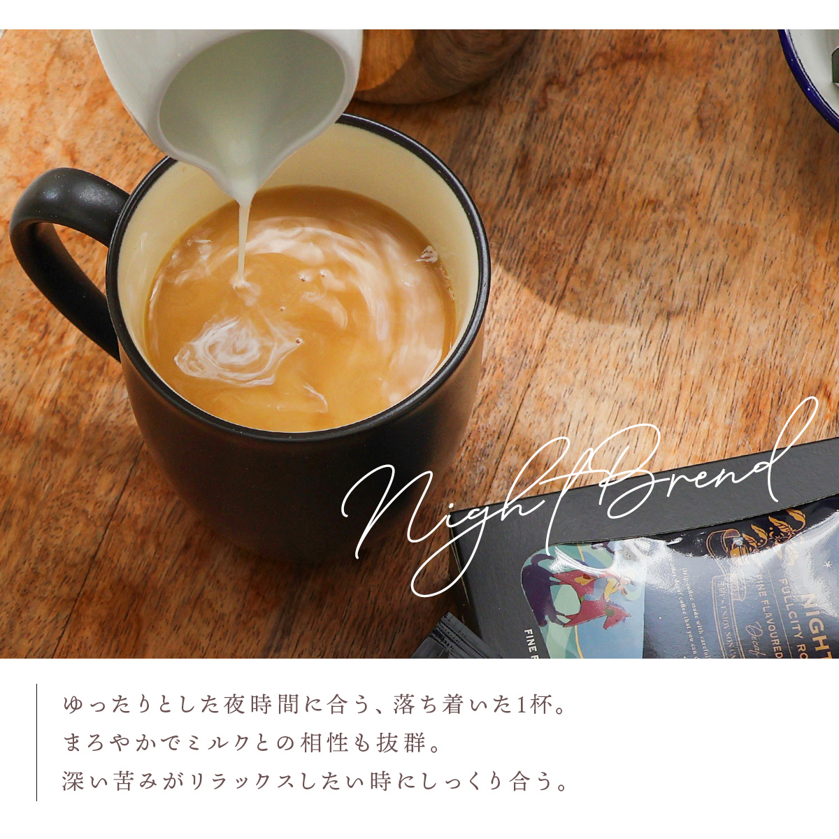 HOME > 全てのアイテム > Pickup > デカフェコーヒーはまとめ買いがお得 > デカフェコーヒー ナイトブレンド ドリップバッグ5包