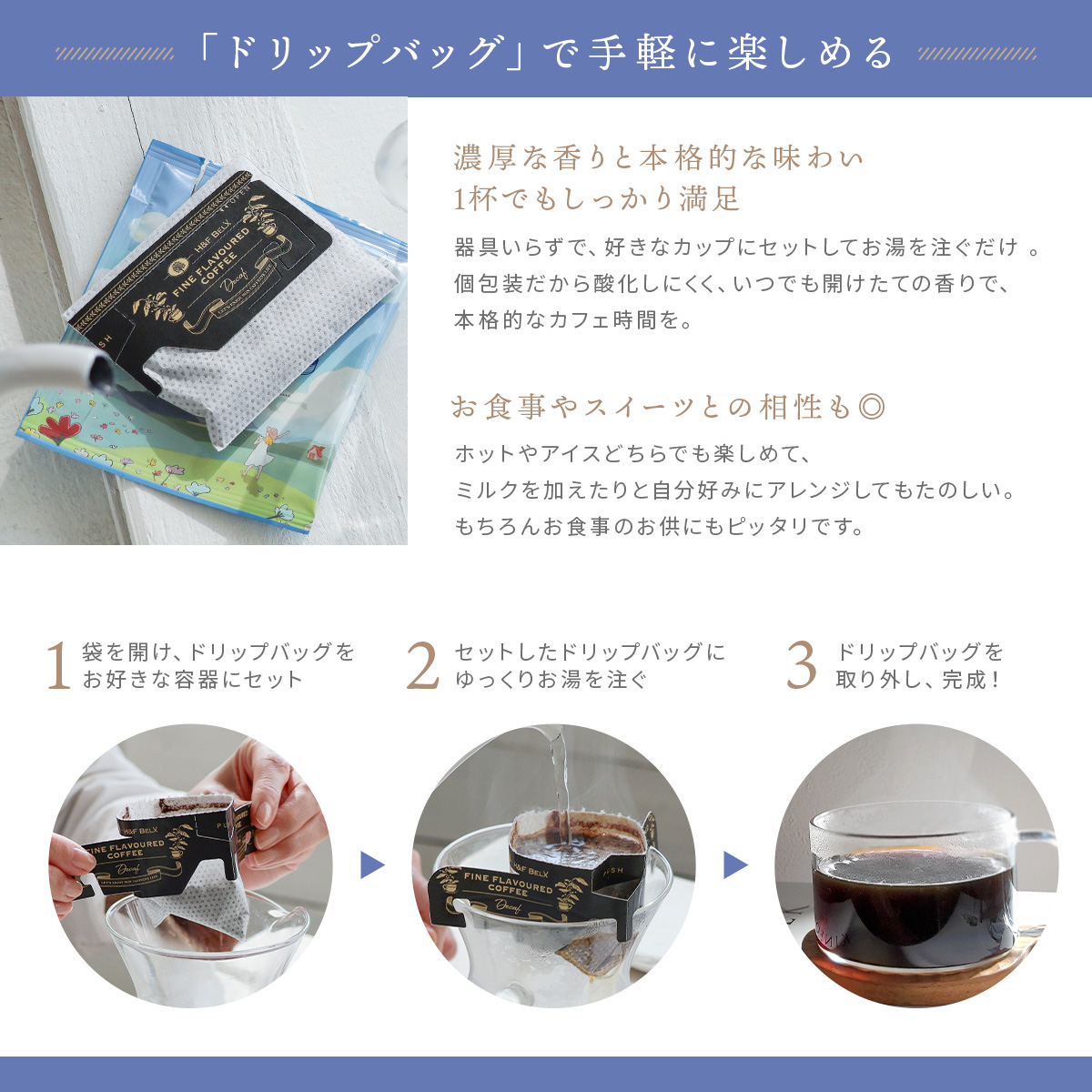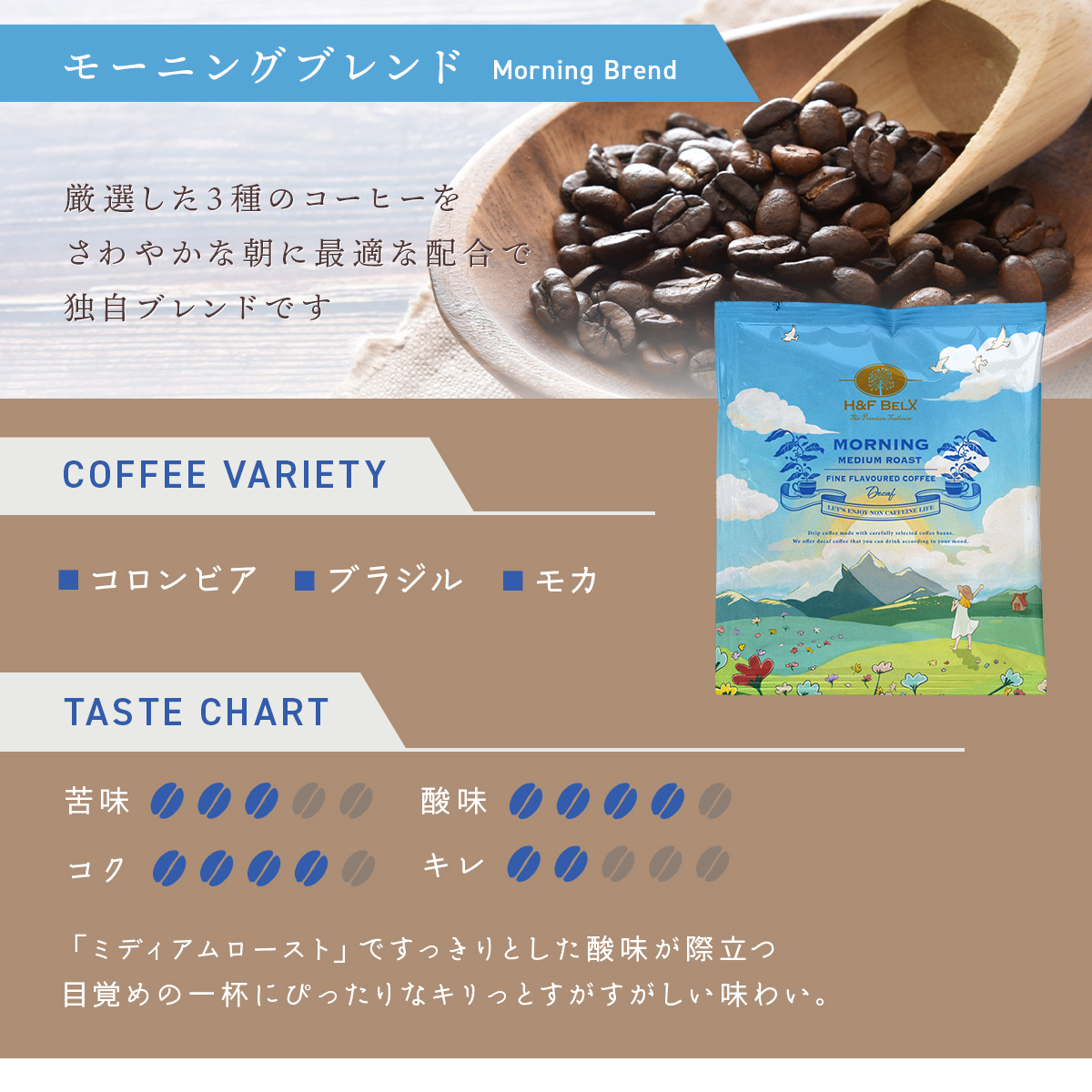 HOME > 全てのアイテム > Pickup > デカフェコーヒーはまとめ買いがお得 > デカフェコーヒー モーニングブレンド ドリップバッグ5包