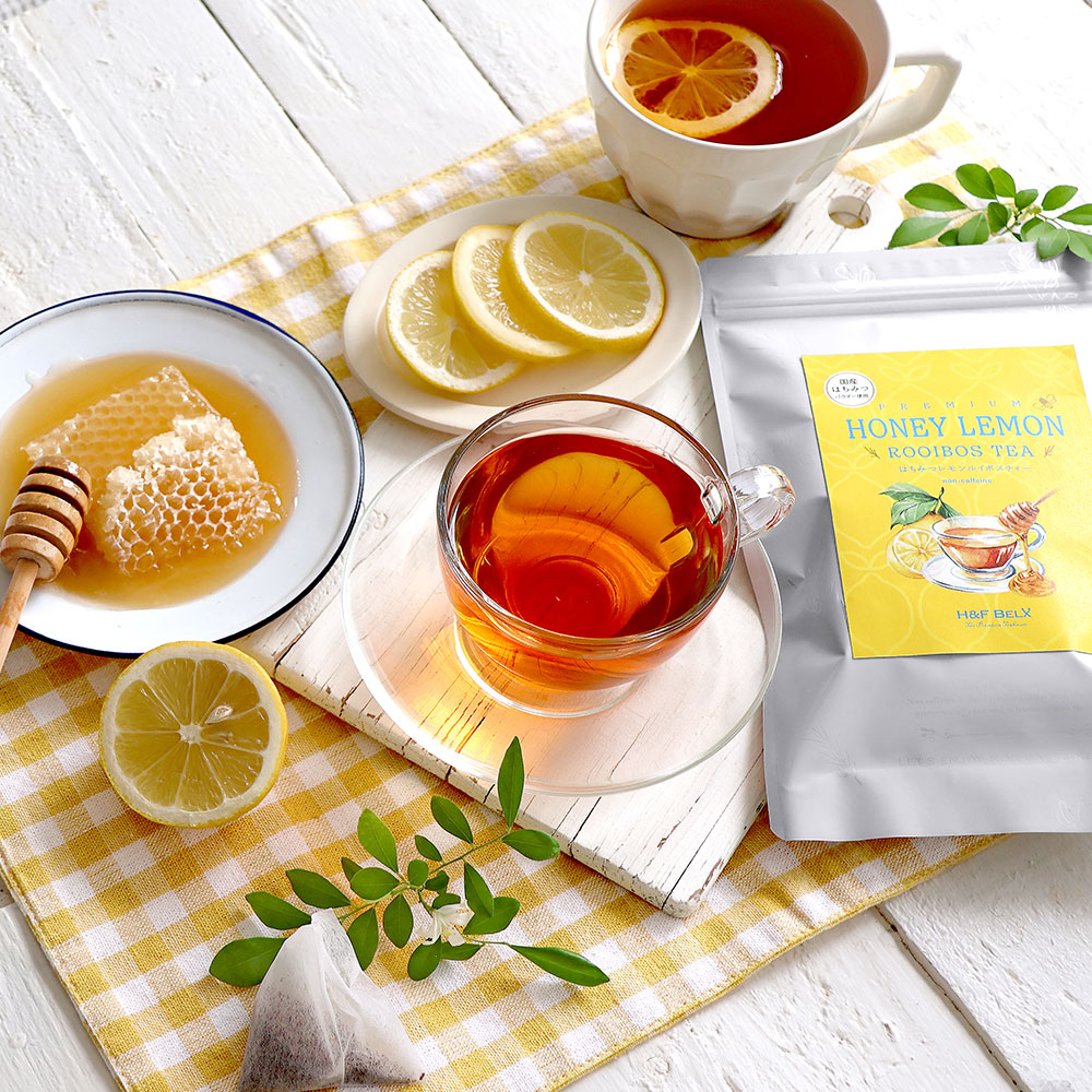 「はちみつレモンルイボスティー」は、国産のはちみつパウダーを使用し、爽やかで甘酸っぱさも感じる仕上がりです。