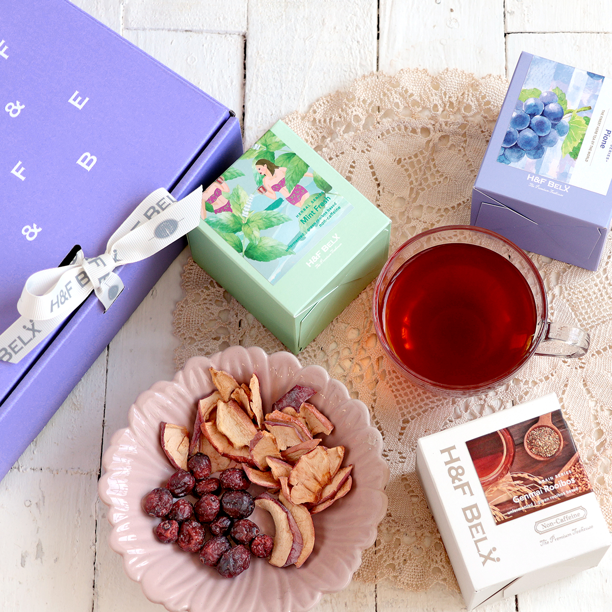 ルイボスティーCUBE3種とドライフルーツ2個を選んで詰め合わせられる、見た目も楽しいオリジナルBOXギフト。 40種以上から選べるノンカフェインのお茶は、日常使いにも贈りものにもぴったりです。※在庫の状況により、選択肢は変動いたします。あらかじめご了承ください。