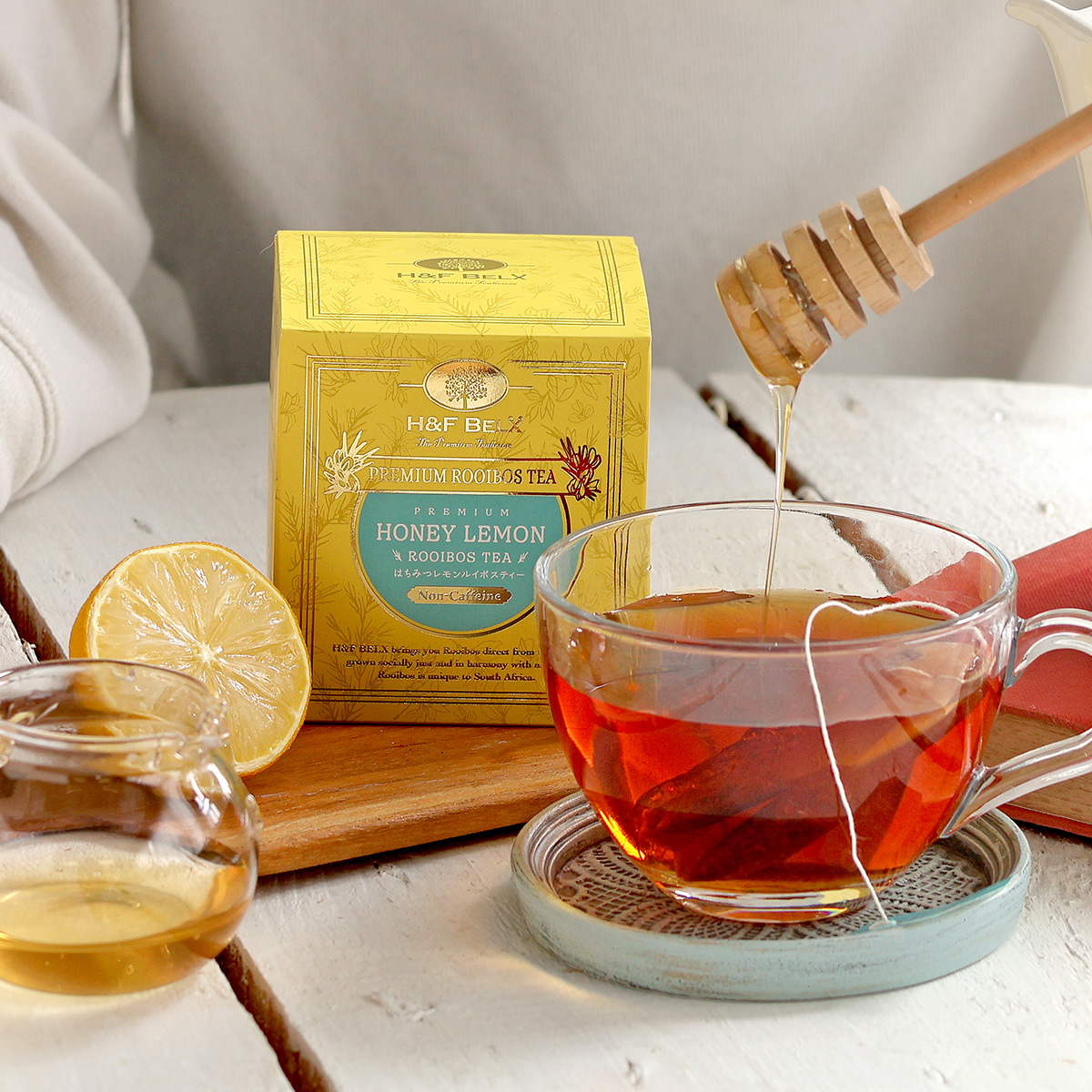まるでスイーツのような心まで満たされる甘〜いお茶。 濃厚なとろりとした甘さが口いっぱいに広がります。 「はちみつレモンルイボスティー」は、国産のはちみつパウダーを使用し、爽やかで甘酸っぱさも感じる仕上がりです。