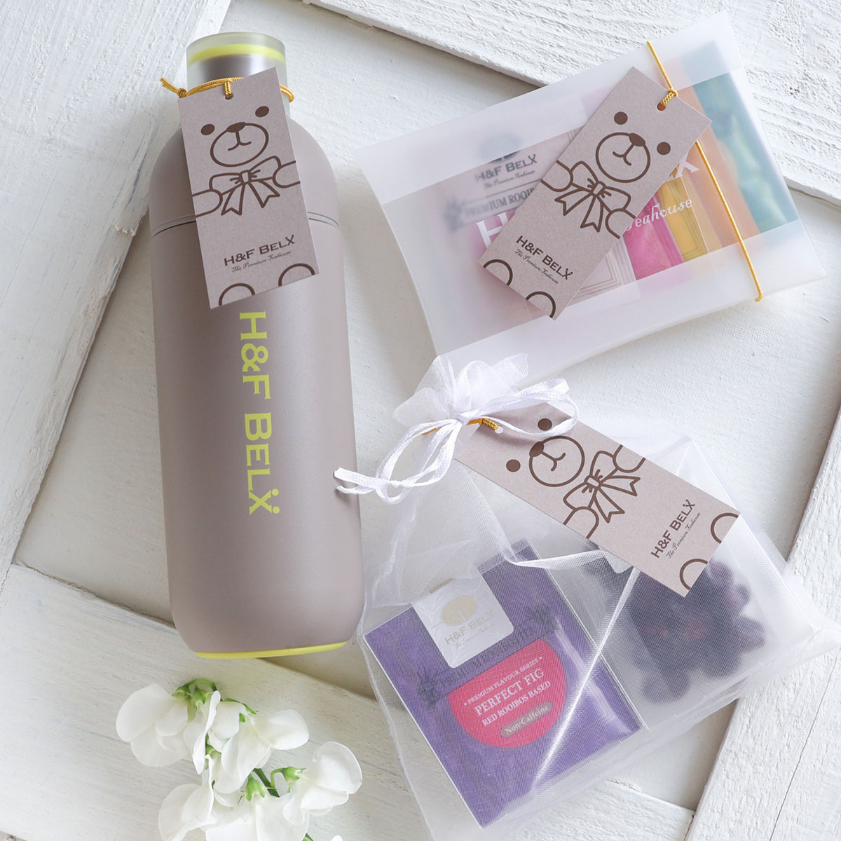 ホワイトデーのギフトにぴったりなH&F BELXオリジナルタグが新登場。紐はゴムになっており、オーガンジー袋や紙袋に留めることができます。※こちらは単品販売のページとなります。お客様のお手元に届きましたらご自身でラッピングをしてギフトにご利用ください。
